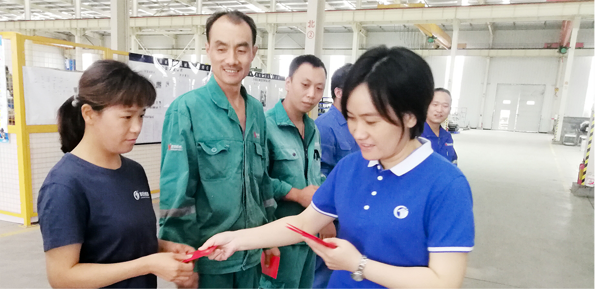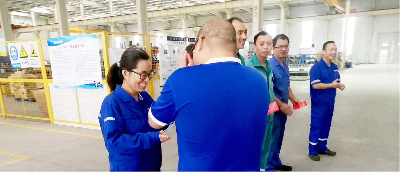 其次付小松公布了“改善提案”表彰人員名單:劉夢(mèng)春、畢哲、程亞芬、楊衛(wèi)東、王濤、王飛,接著邀請(qǐng)胡總和謝總頒發(fā)現(xiàn)金獎(jiǎng)勵(lì)和“改善之星”榮譽(yù)證書?!案纳浦恰苯o大家分享了改善方案。